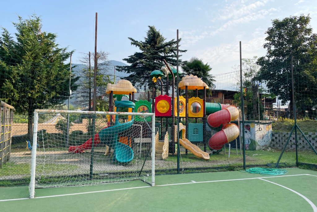 Kinderen kunnen hier goed spelen, klimmen en voetballen.